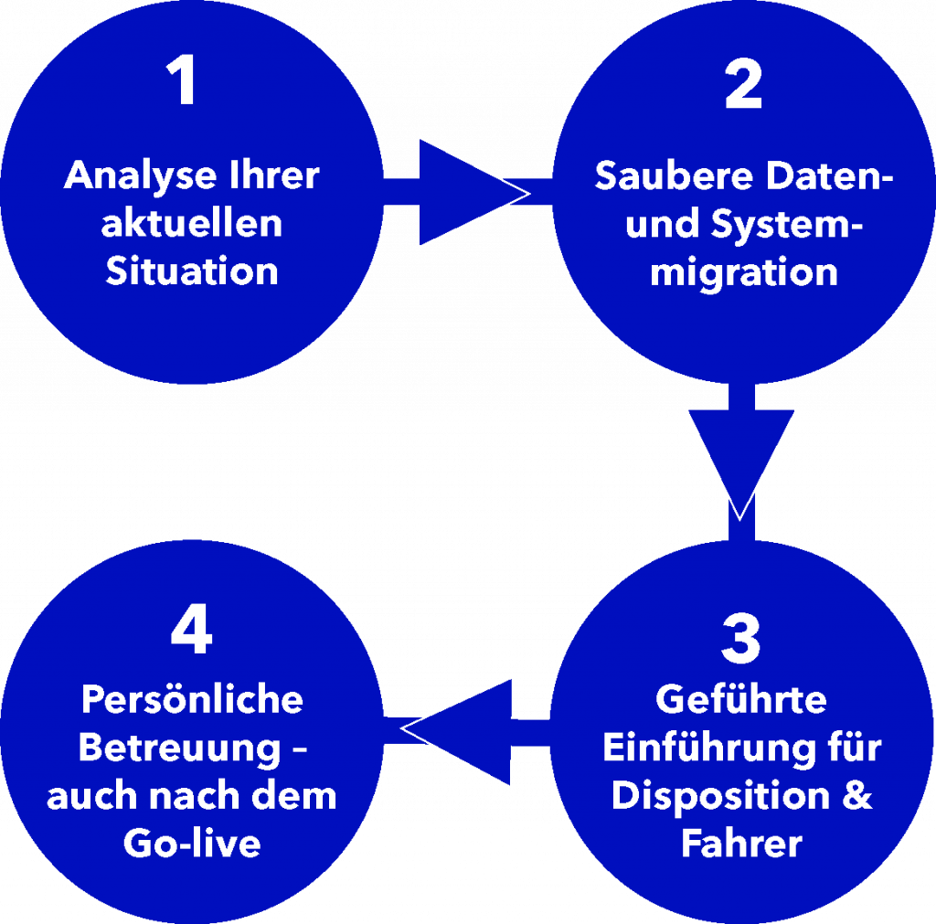 Wechsel ohne Risiko - für eine Planung, die wirklich funktioniert... Erfahren Sie, wie einfach der Umstieg auf bessere Tourenplanung gelingt. CONTACT US NOW Kommt Ihnen das bekannt vor? Ihre aktuelle Software wird eingestellt (End of Life) oder nicht mehr weiterentwickelt Die Software deckt ihre eigentlichen Anforderungen nicht ab Die Lösung ist kompliziert, wenig intuitiv oder intern kaum akzeptiert Support reagiert langsam oder versteht Ihr Tagesgeschäft nicht Die Kosten steigen, der Mehrwert stagniert Sie fragen sich: Gibt es nicht etwas Besseres? Das bringt der Wechsel. Intelligente Tourenplanung & Telematik aus einer HandSchnelle Einführung und hohe NutzerakzeptanzPersönlicher Support, der Ihr Geschäft verstehtModerne, sichere und skalierbare Plattform Unsere Kunden berichten vom Softwarewechsel. The right decision: Successful software change at deli carte. GO TO STORY 27.6 tonnes of CO2 saved at just one location - bardusch optimises with TransIT. GO TO STORY So läuft der Wechsel ab. Starten Sie unverbindlich in eine bessere Zukunft. Bereit für einen besseren Weg? Lassen Sie uns gemeinsam prüfen, ob TransIT die richtige Alternative für Sie ist. CONTACT US NOW